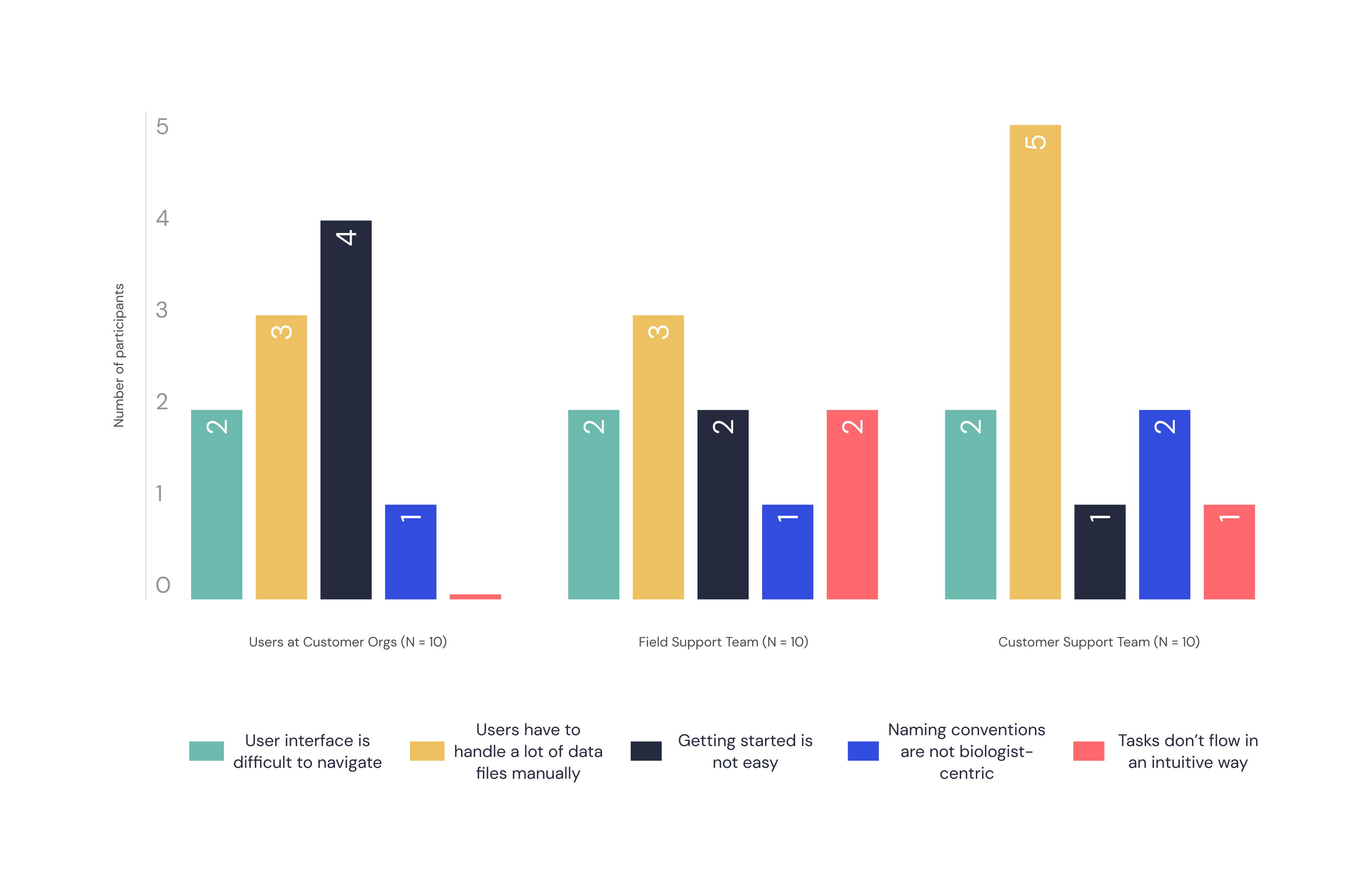 Though the issues with the platform's software were glaringly obvious to the Field and Support teams, the Tech teams were more focoused on building to spec than addressing known issues with the UX. Additionally, siloed departments and a general lack of process meant that cross-functional partners such as Product Management and Customer Success had difficulty exerting influence to prioritize the software suite's usability.