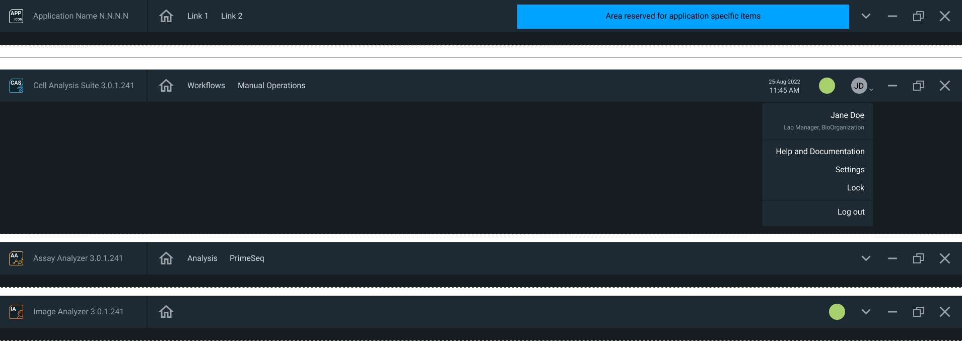 The new top bar navigation - established as a part of the brand new design system - applied to different applications