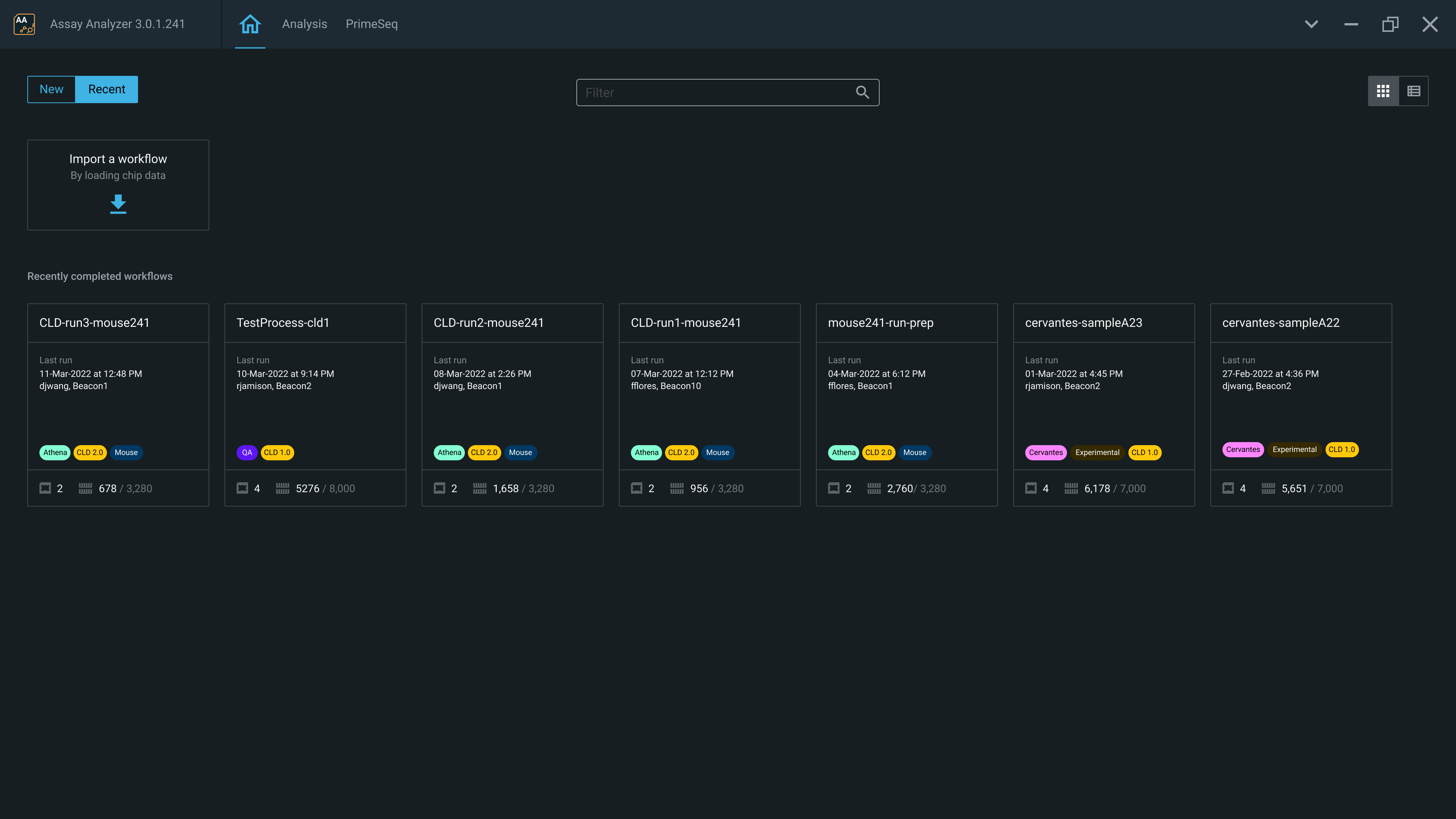 The "start page" home screen as implemented in Assay Analyzer