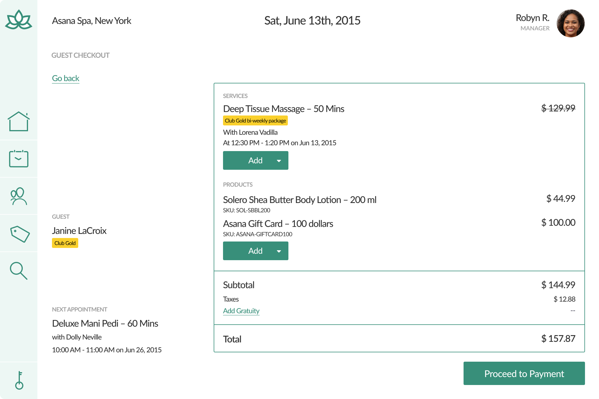Point of Sale (POS) design for ATRIO Spa